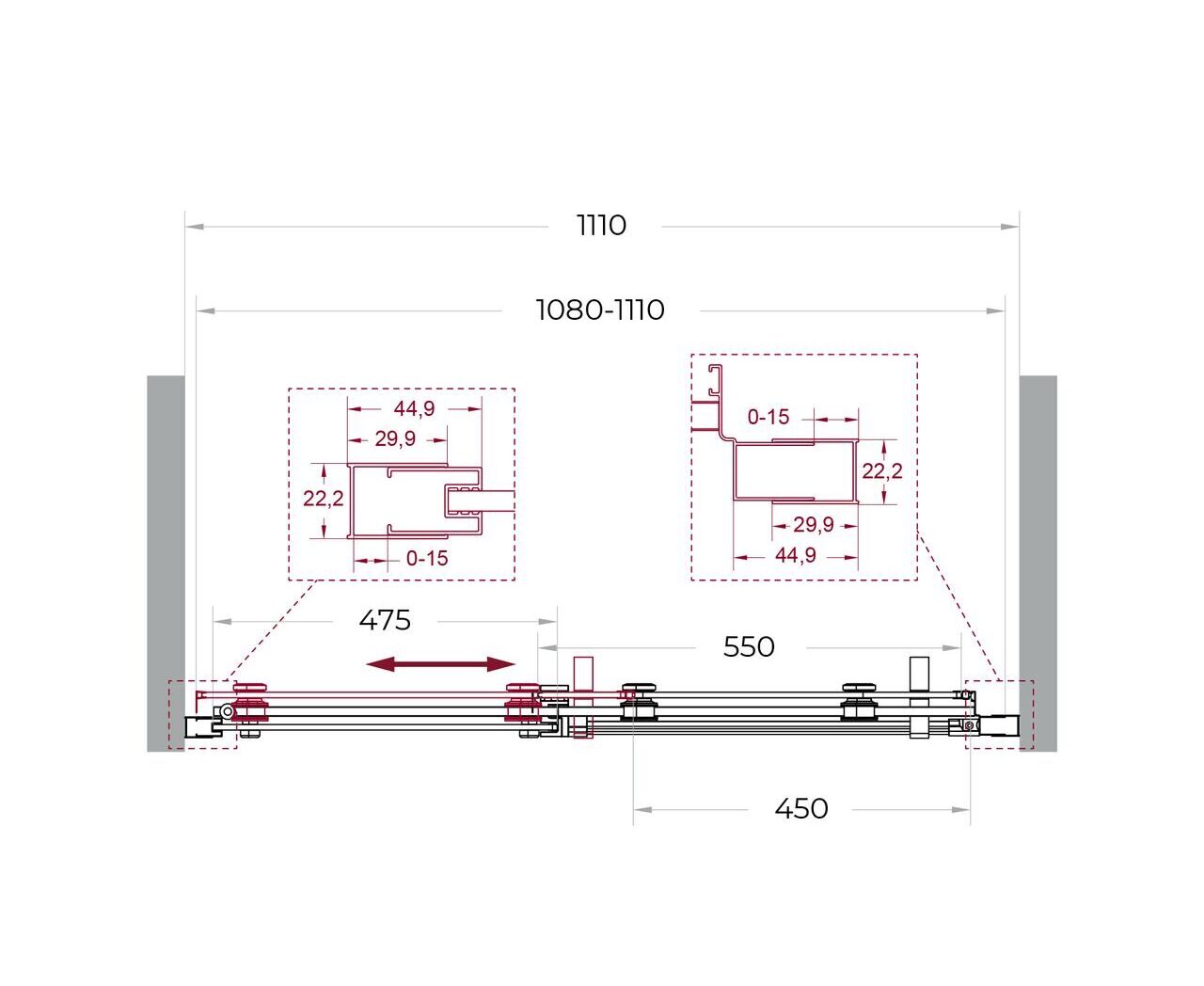 Раздвижные двери оборудованы одинарными роликами увеличенного диаметра, корпуса которых изготовлены из прочного сплава Zamak (цинко-алюминиево-магниево-медного состава) и нержавеющей стали. Такая комбинация материалов обеспечивает длительную и надежную эксплуатацию механизмов.