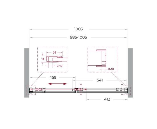 Система подвески: Двойные навесные ролики из нержавеющей стали с держателем стекла обеспечивают плавное движение створки, ее устойчивость и отсутствие перекосов.