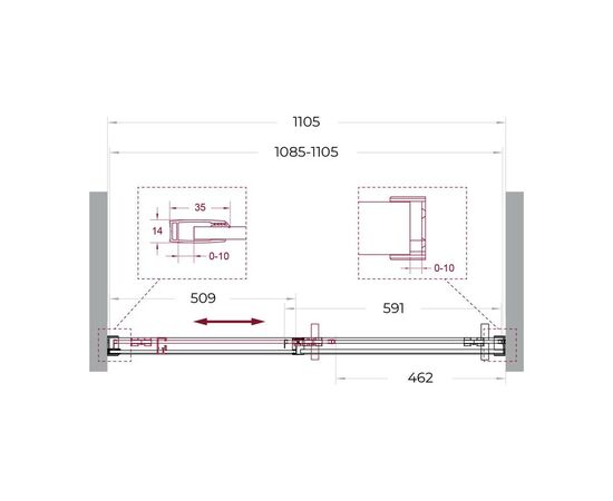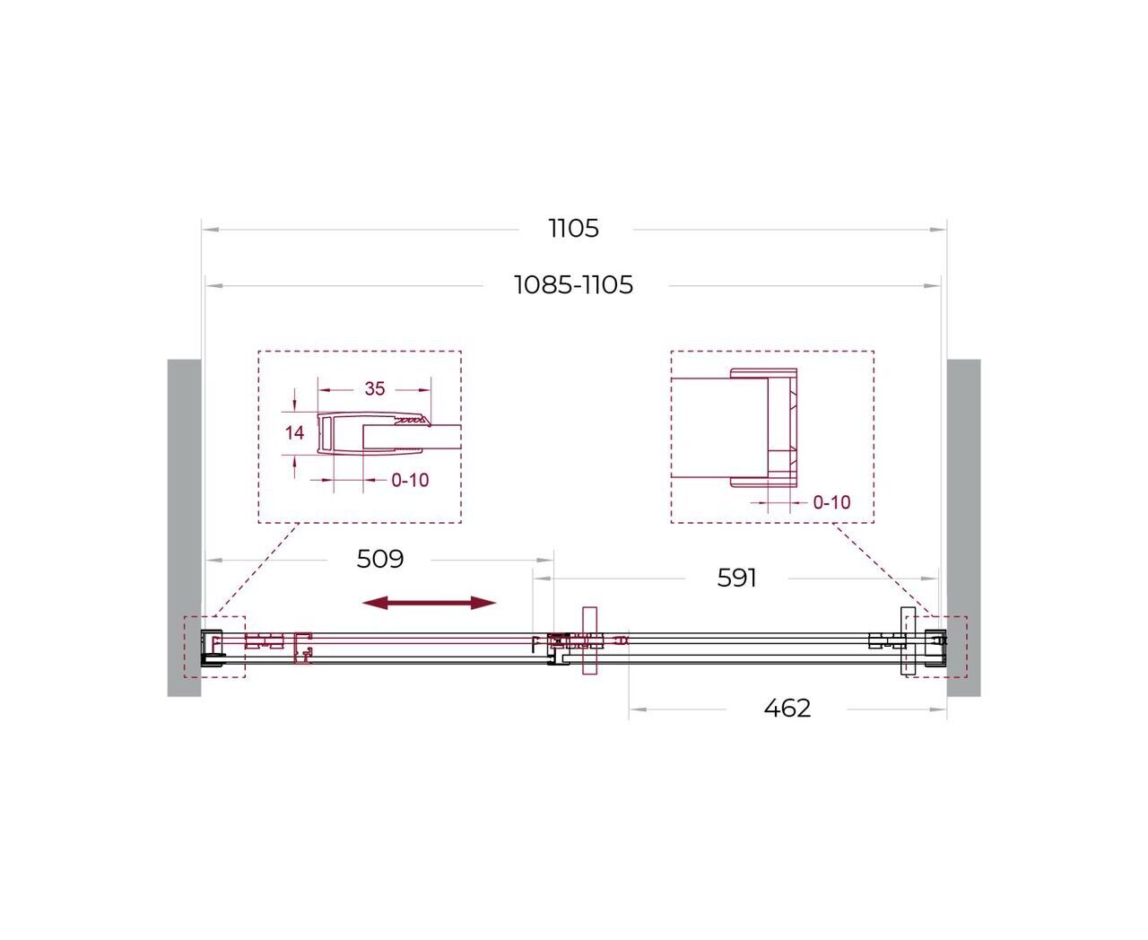 Система подвески: Двойные навесные ролики из нержавеющей стали с держателем стекла обеспечивают плавное движение створки, ее устойчивость и отсутствие перекосов.