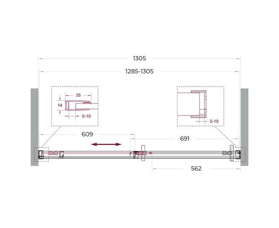Система подвески: Двойные навесные ролики из нержавеющей стали с держателем стекла обеспечивают плавное движение створки, ее устойчивость и отсутствие перекосов.