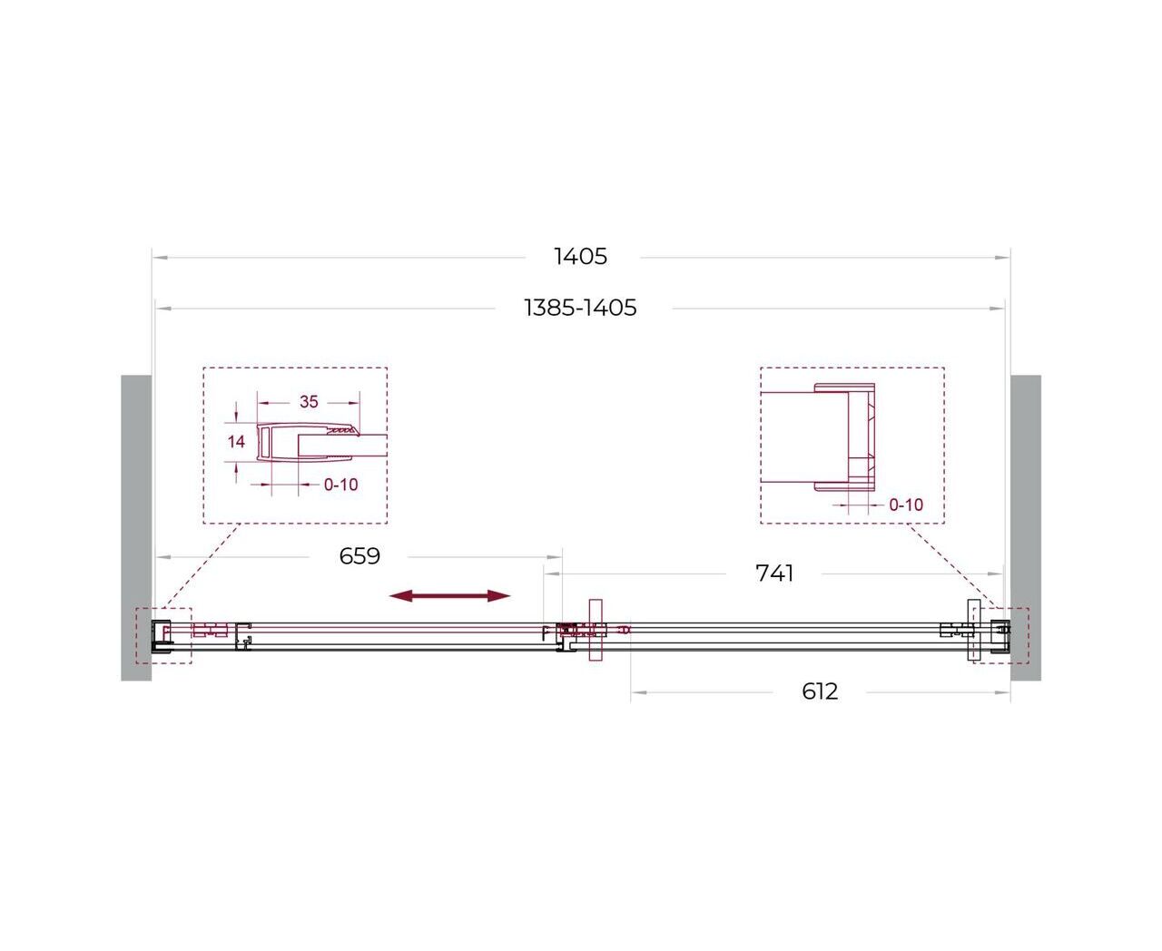Система подвески: Двойные навесные ролики из нержавеющей стали с держателем стекла обеспечивают плавное движение створки, ее устойчивость и отсутствие перекосов.