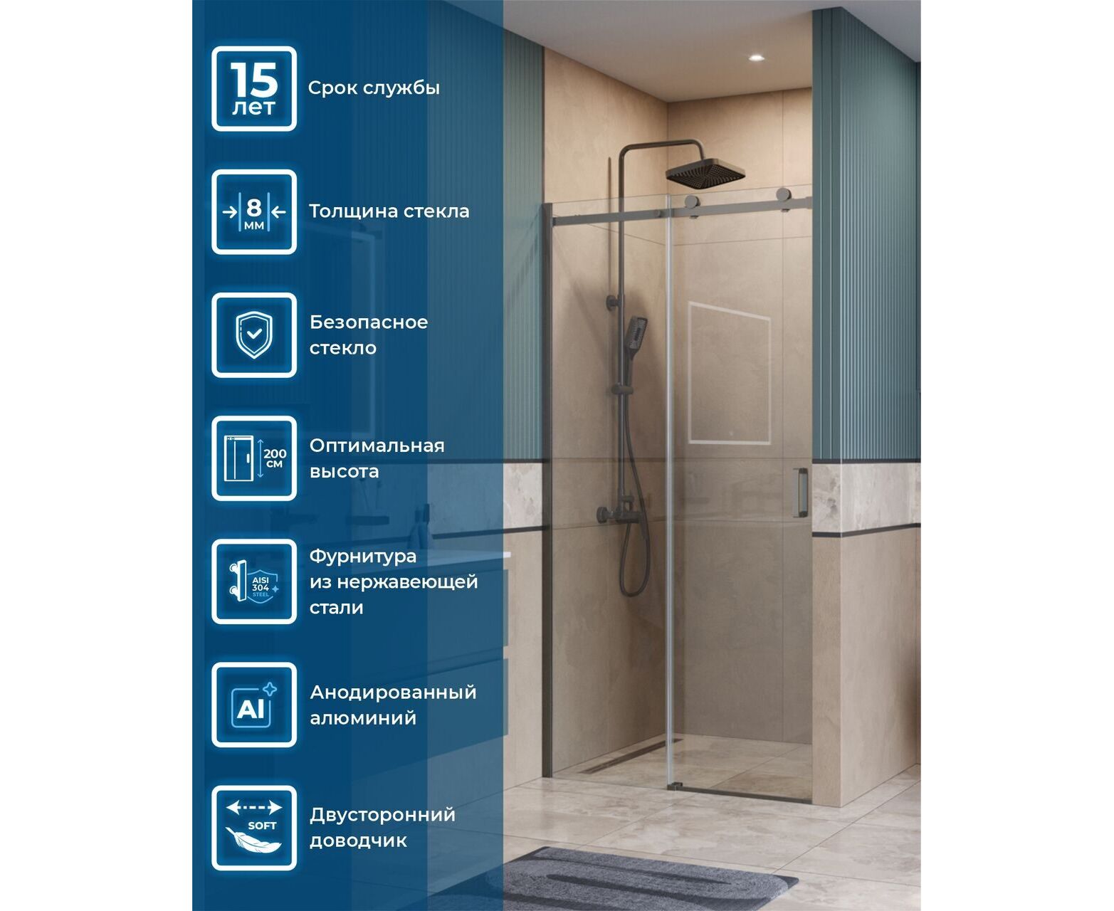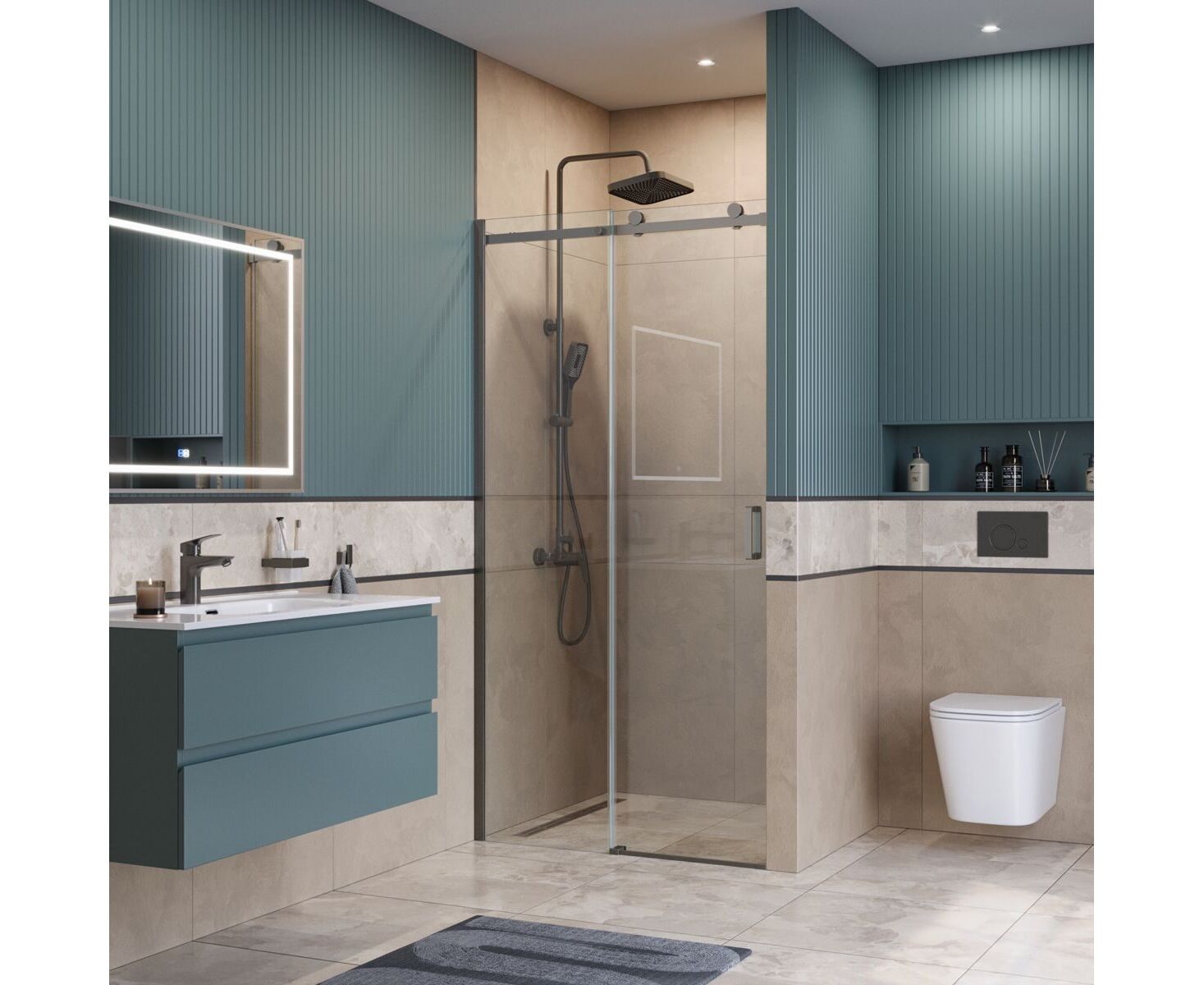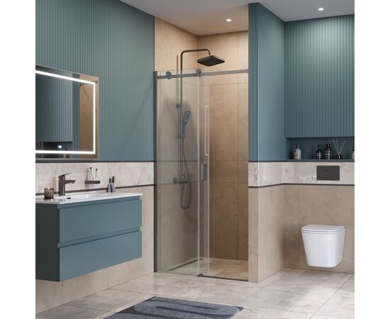 Коллекция сохраняет все преимущества минималистичного дизайна: минимум деталей, узкие профили и прозрачное стекло, которое не перегружает пространство, подчёркивая ощущение простора в ванной. Особая фишка — ролики увеличенного диаметра, обеспечивающие сверх плавное и бесшумное скольжение стеклянной панели без малейших усилий. Эти крупные элементы визуально доминируют, добавляя ограждению нотку надёжности и индустриальной эстетики в минималистичном стиле. Благодаря им ощущается лёгкость движения двери, усиливающая общее впечатление роскоши и стабильности, будто конструкция парит.