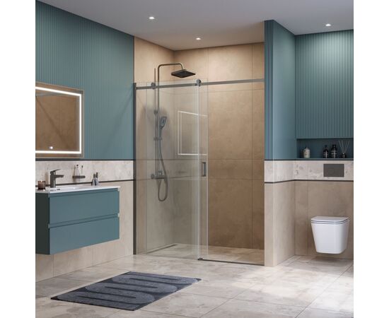 Коллекция сохраняет все преимущества минималистичного дизайна: минимум деталей, узкие профили и прозрачное стекло, которое не перегружает пространство, подчёркивая ощущение простора в ванной. Особая фишка — ролики увеличенного диаметра, обеспечивающие сверх плавное и бесшумное скольжение стеклянной панели без малейших усилий. Эти крупные элементы визуально доминируют, добавляя ограждению нотку надёжности и индустриальной эстетики в минималистичном стиле. Благодаря им ощущается лёгкость движения двери, усиливающая общее впечатление роскоши и стабильности, будто конструкция парит.