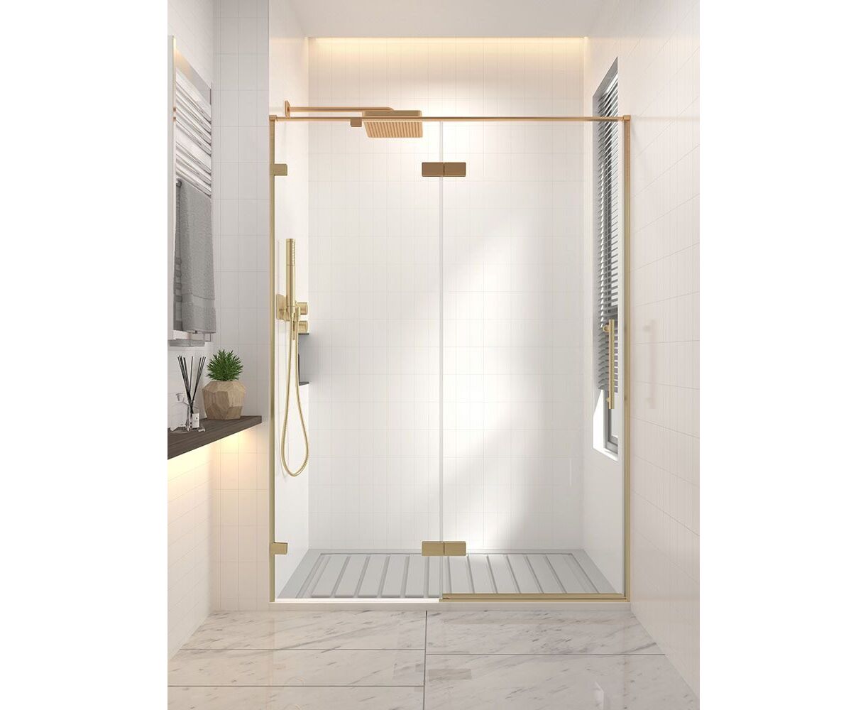 Минимальное количество для товара "Душевая дверь распашная Veconi Premium Alassio G 1400х2000 брашированное золото стекло прозрачное осветленное" 1.