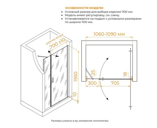 Характеристики Душевая дверь RGW LE-008 (LE-003 + Z-09 + профиль A-14)