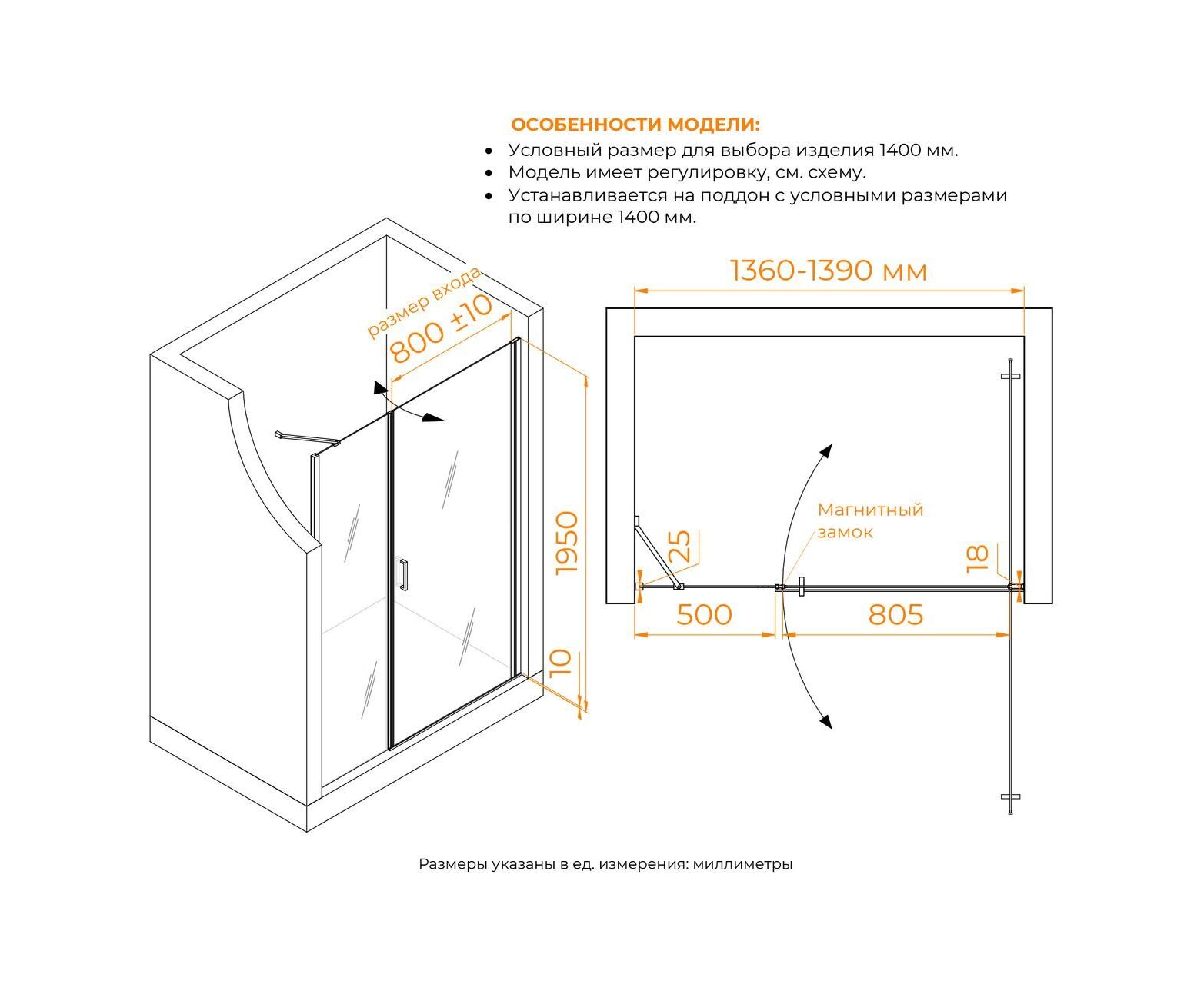 Характеристики Душевая дверь RGW LE-008 (LE-003 + Z-09 + профиль A-14)