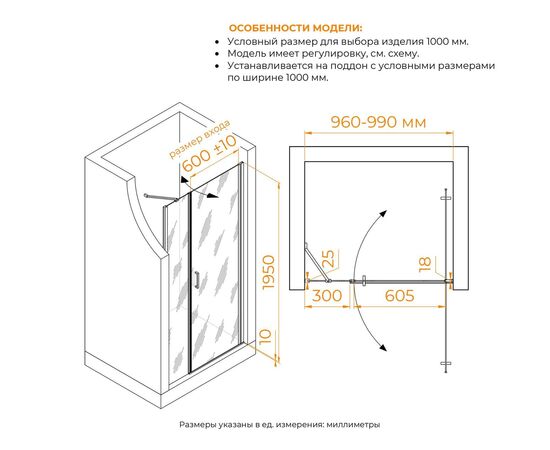 Характеристики Душевая дверь RGW LE-008 (LE-003 + Z-09 + профиль A-14)
