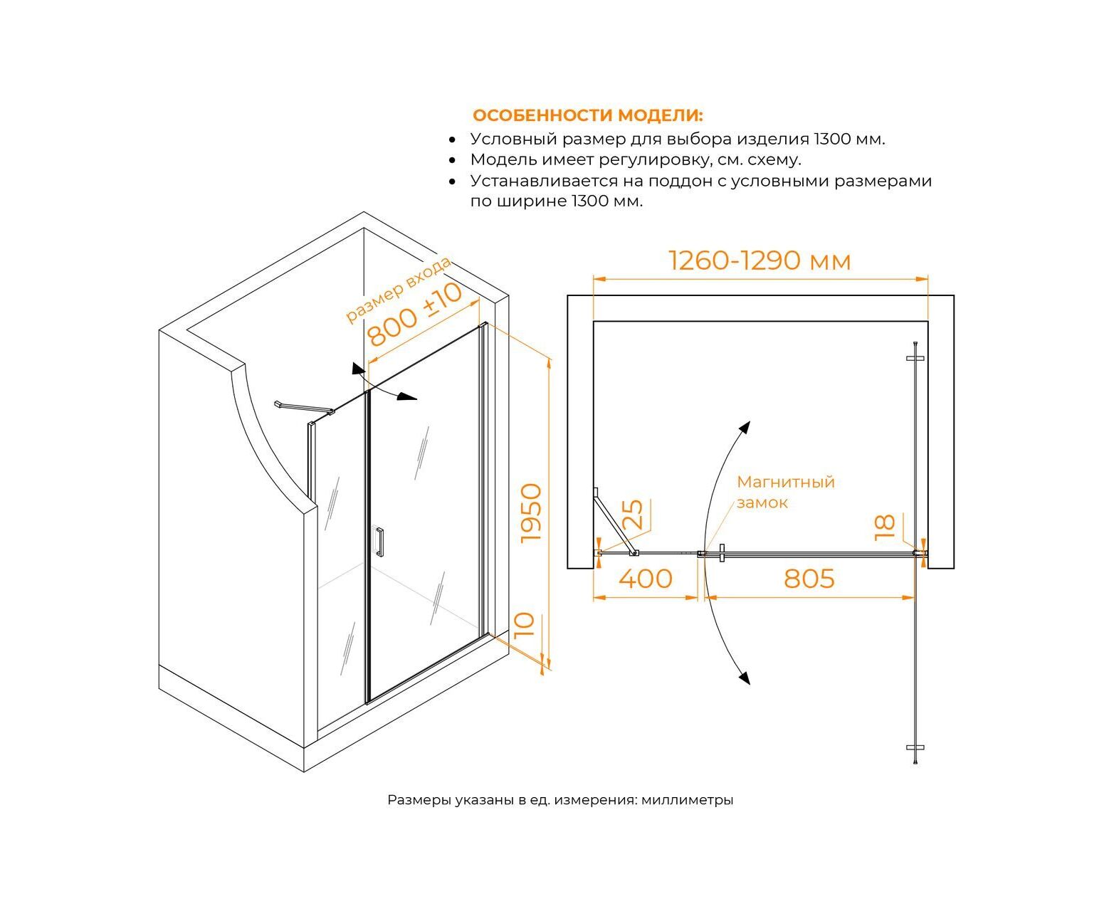 Характеристики Душевая дверь RGW LE-008 (LE-003 + Z-09 + профиль A-14)