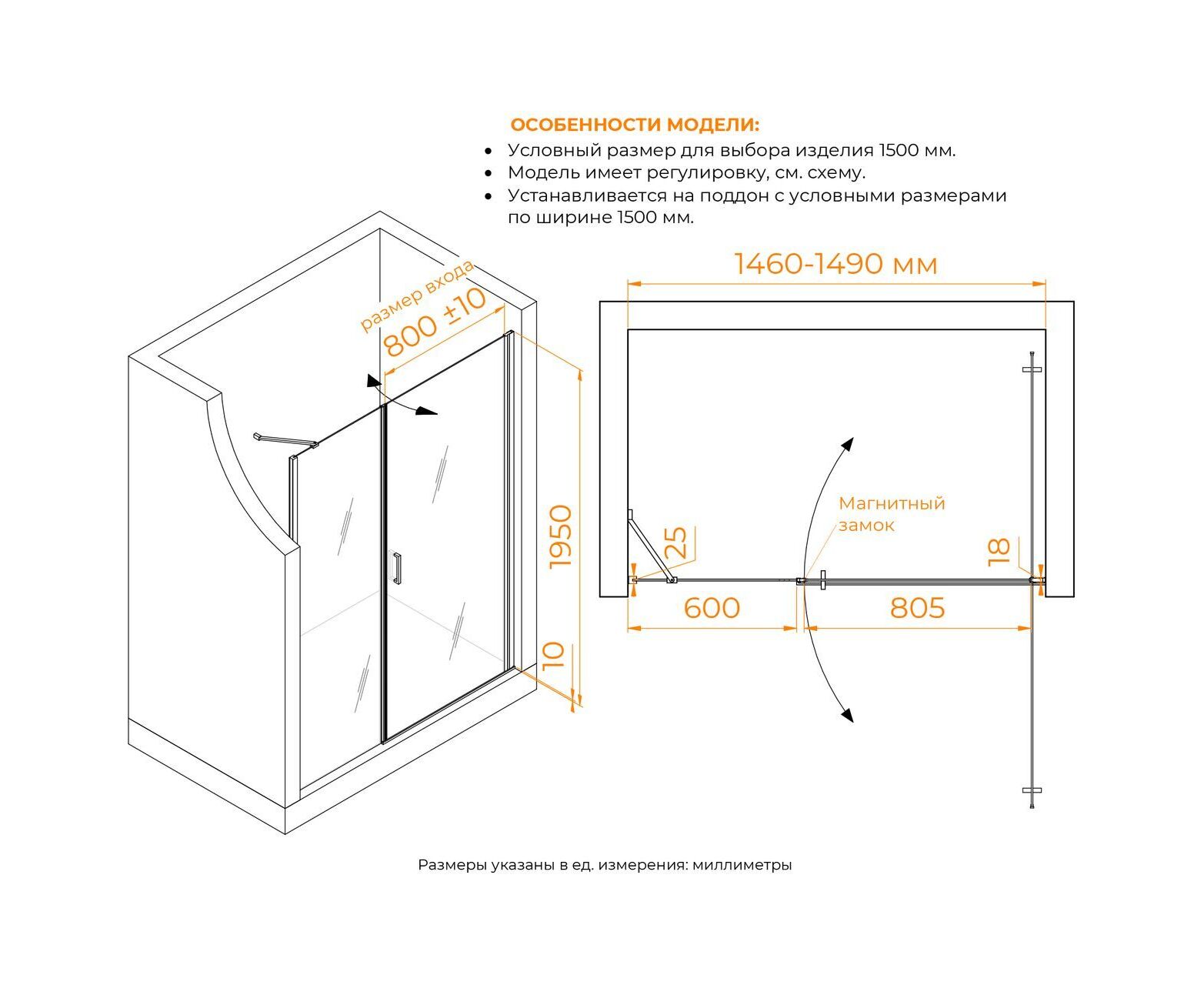 Характеристики Душевая дверь RGW LE-008 (LE-003 + Z-09 + профиль A-14)