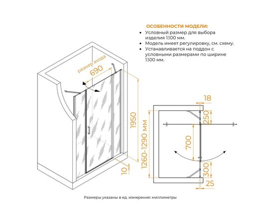 Характеристики Душевая дверь RGW LE-009 (LE-004 + Z-09+профиль A-14)