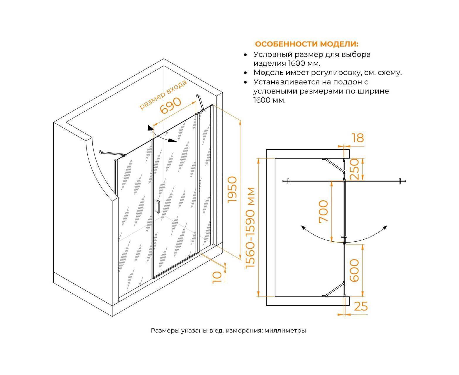 Характеристики Душевая дверь RGW LE-009 (LE-004 + Z-09+профиль A-14)