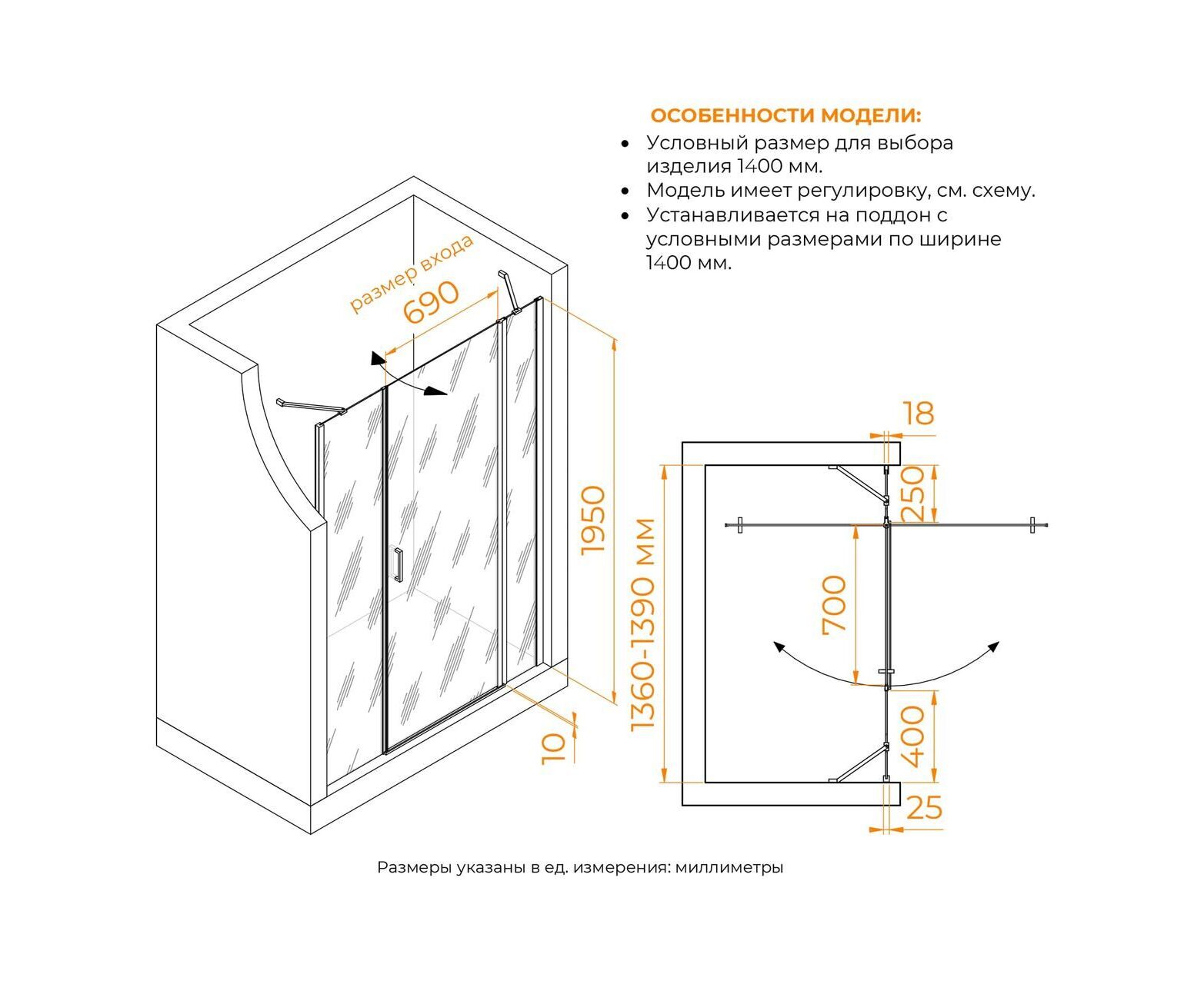 Характеристики Душевая дверь RGW LE-009 (LE-004 + Z-09+профиль A-14)
