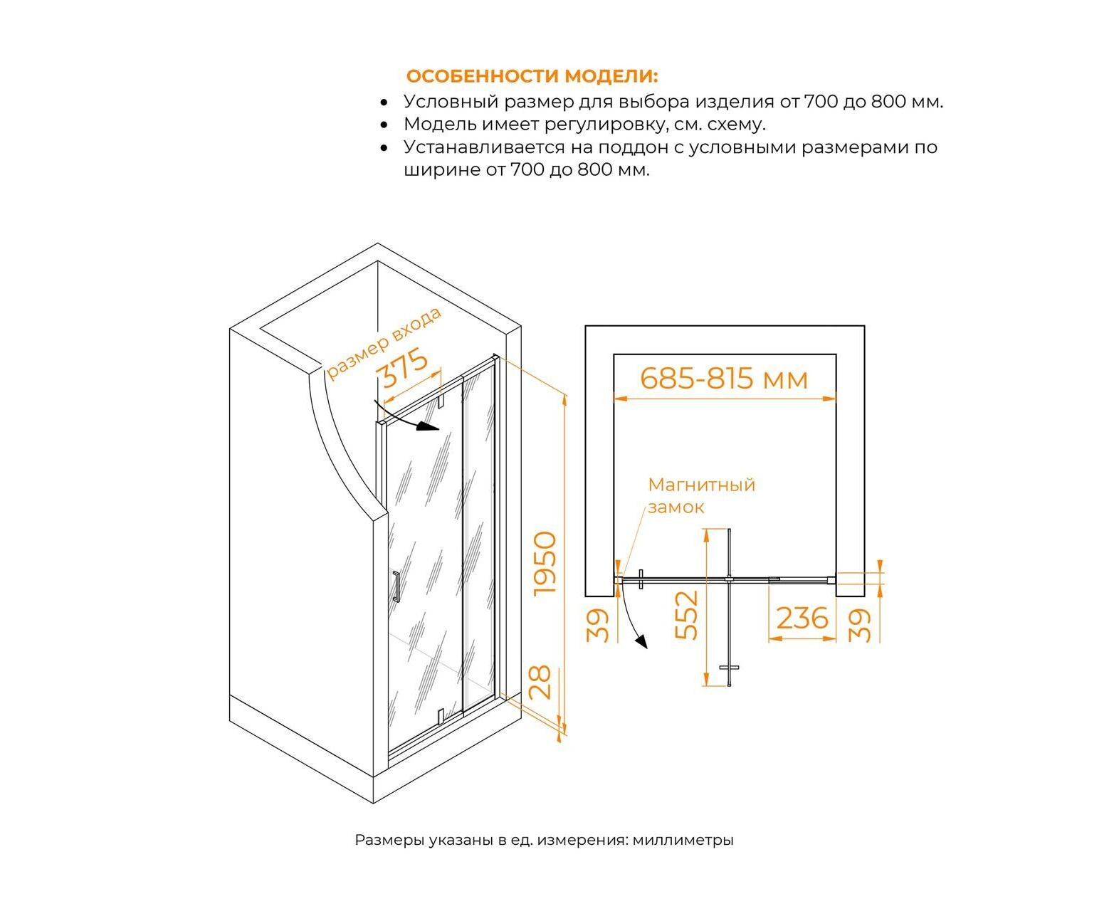 Характеристики Душевая дверь RGW PA-008