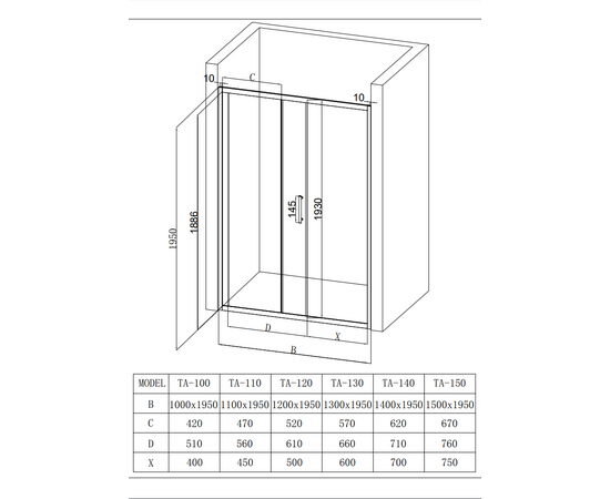 Характеристики Душевая дверь Taliente TA-130-1CB напольная 130х195 см