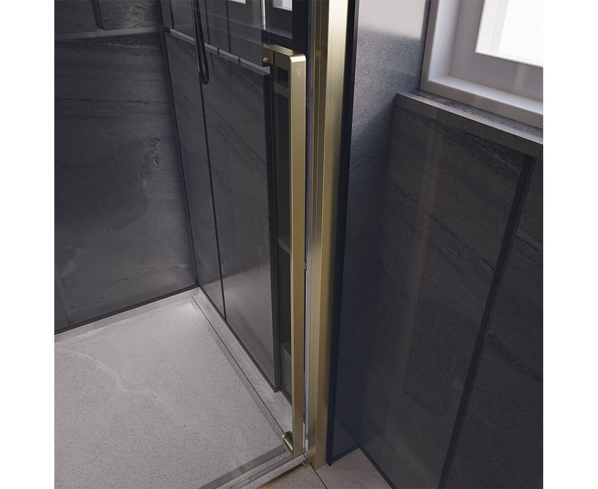 Отзывы о Душевая дверь Veconi Premium Trento PTD-30G 1300х2000 брашированное золото стекло прозрачное от реальных покупателей