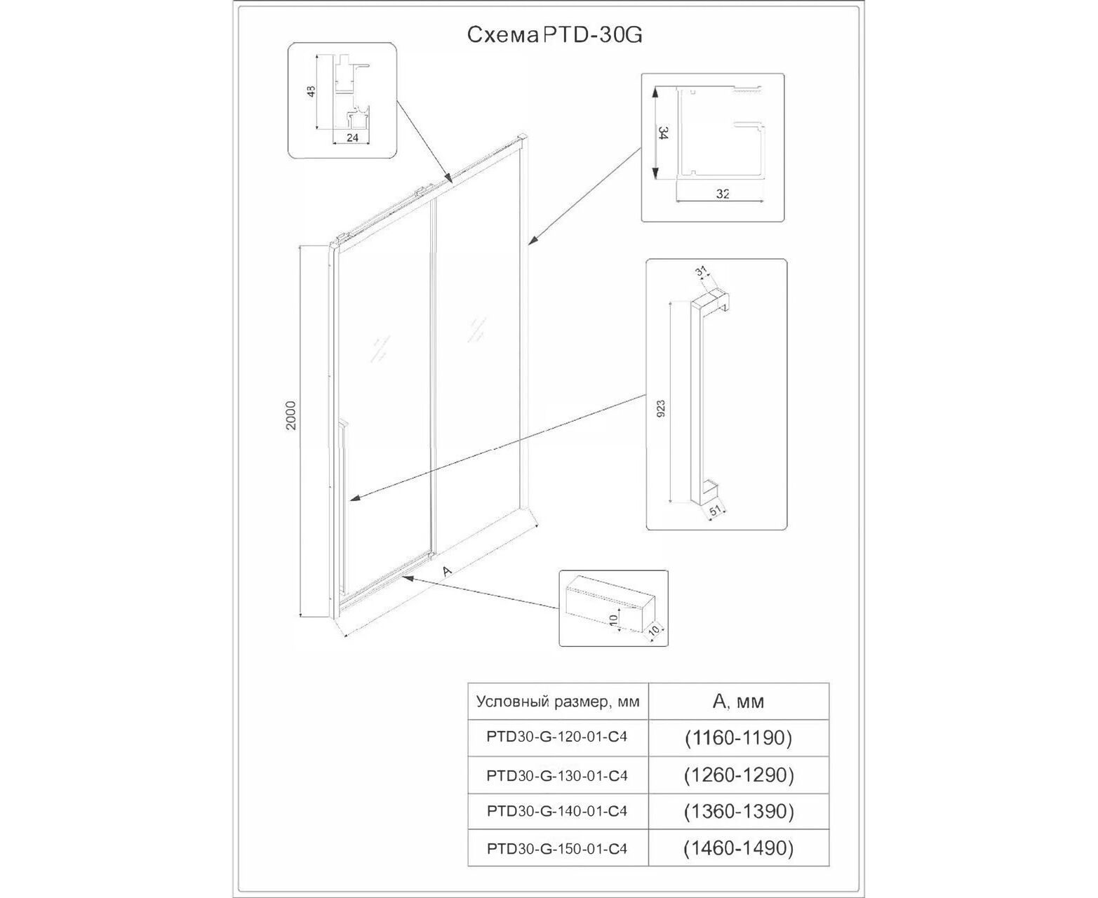 Характеристики Душевая дверь Veconi Premium Trento PTD-30G 1500х2000 брашированное золото стекло прозрачное