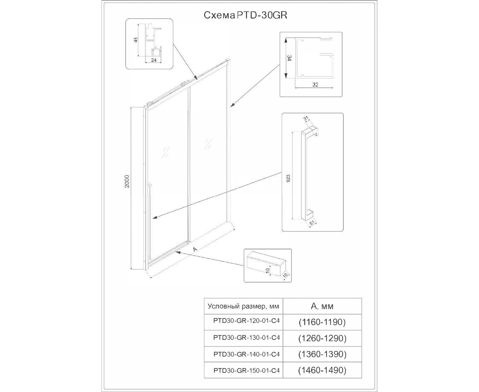Характеристики Душевая дверь Veconi Premium Trento PTD-30GR 1400х2000 брашированный графит стекло прозрачное