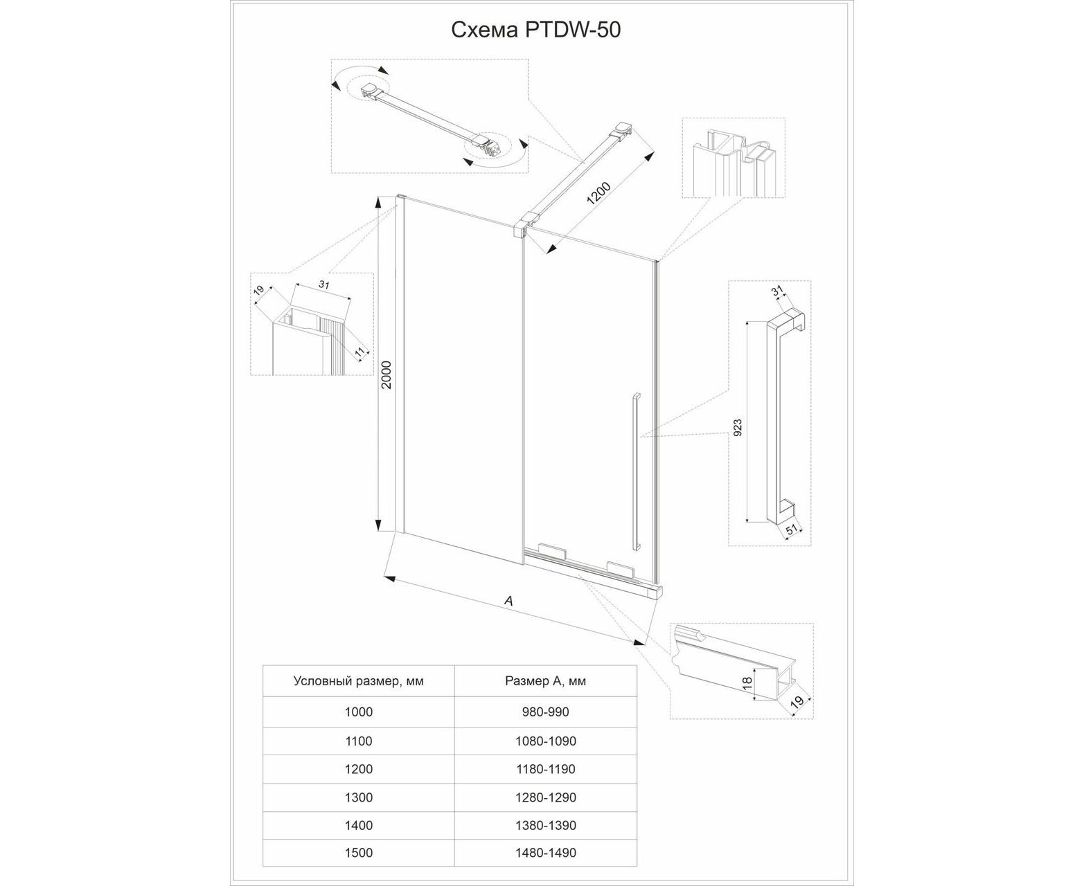 Характеристики Душевая дверь Veconi Premium Trento PTDW-50CH 1400x2000 хром стекло прозрачное
