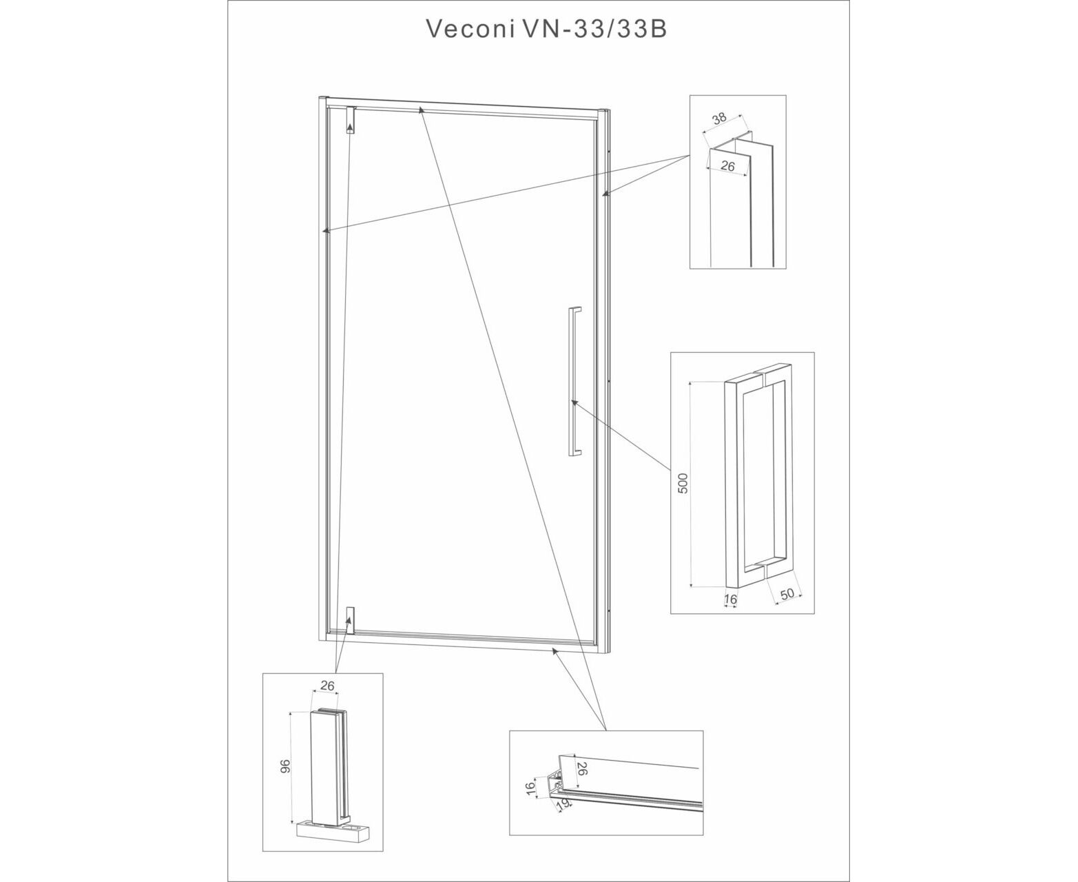 Характеристики Душевая дверь Veconi Vianno VN-33 900x1950 хром стекло прозрачное