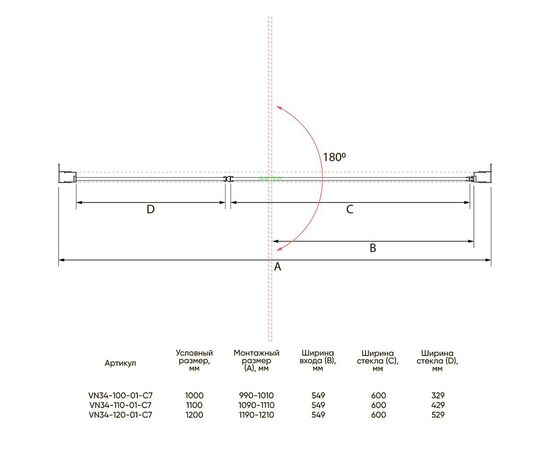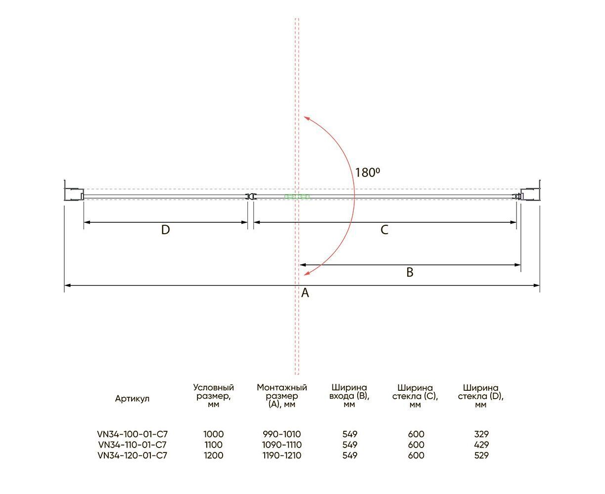 Характеристики Душевая дверь Veconi Vianno VN-34 1100x1950 хром стекло прозрачное