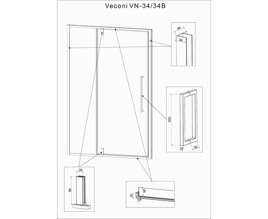 Характеристики Душевая дверь Veconi Vianno VN-34B 1100x1950 черный стекло прозрачное