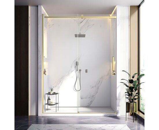 Душевая дверь Veconi Vianno VN-75G 1500x2000 золото брашинг стекло прозрачное