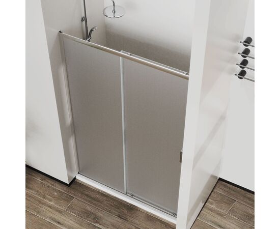 Душевая дверь City VDS-5CT150MT, 1500, хром, стекло текстурное. Двойные верхние и одинарные нижние ролики, Ручка из АБС-пластика. Обработка стекла: нет.