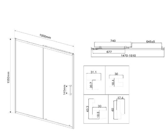 Характеристики Душевая дверь Vincea City VDS-5CT150MT 1500 хром стекло текстурное