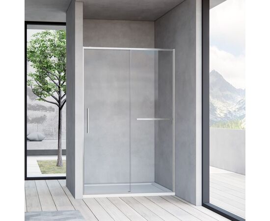 Душевая дверь Slim Soft VDS-1SS120CLBN, 1200, брашированный никель, стекло прозрачное. Двусторонний доводчик для плавного закрывания двери, держатель полотенца. Обработка стекла: Easy Clean.