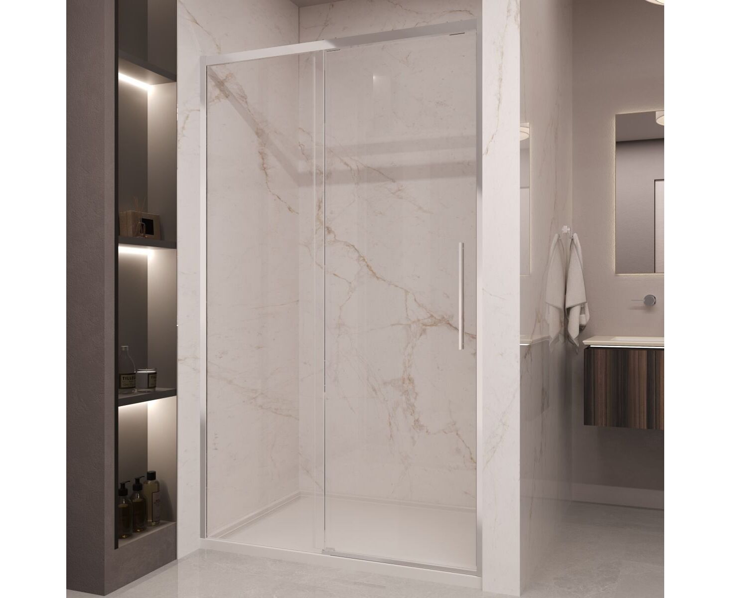 Душевая дверь Stella VDS-1ST110CL, 1100, хром, стекло прозрачное. Доводчики закрывания двери, ручка 430. Обработка стекла: Easy Clean.