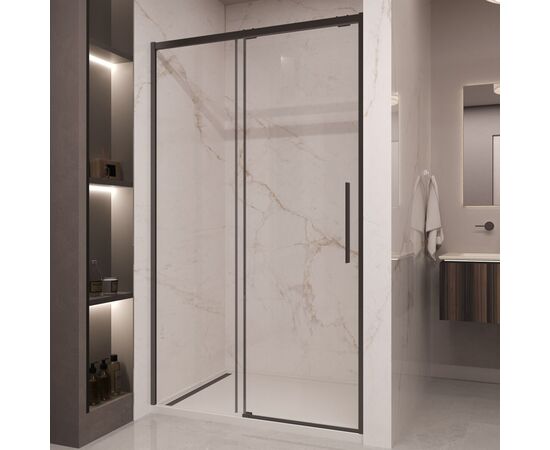 Душевая дверь Stella VDS-1ST110CLB, 1100, черный, стекло прозрачное. Доводчики закрывания двери, ручка 430. Обработка стекла: Easy Clean.