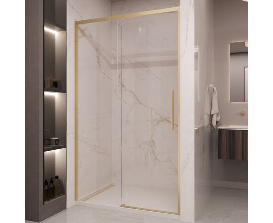 Душевая дверь Stella VDS-1ST120CLG, 1200, брашированное золото, стекло прозрачное. Доводчики закрывания двери, ручка 430. Обработка стекла: Easy Clean.