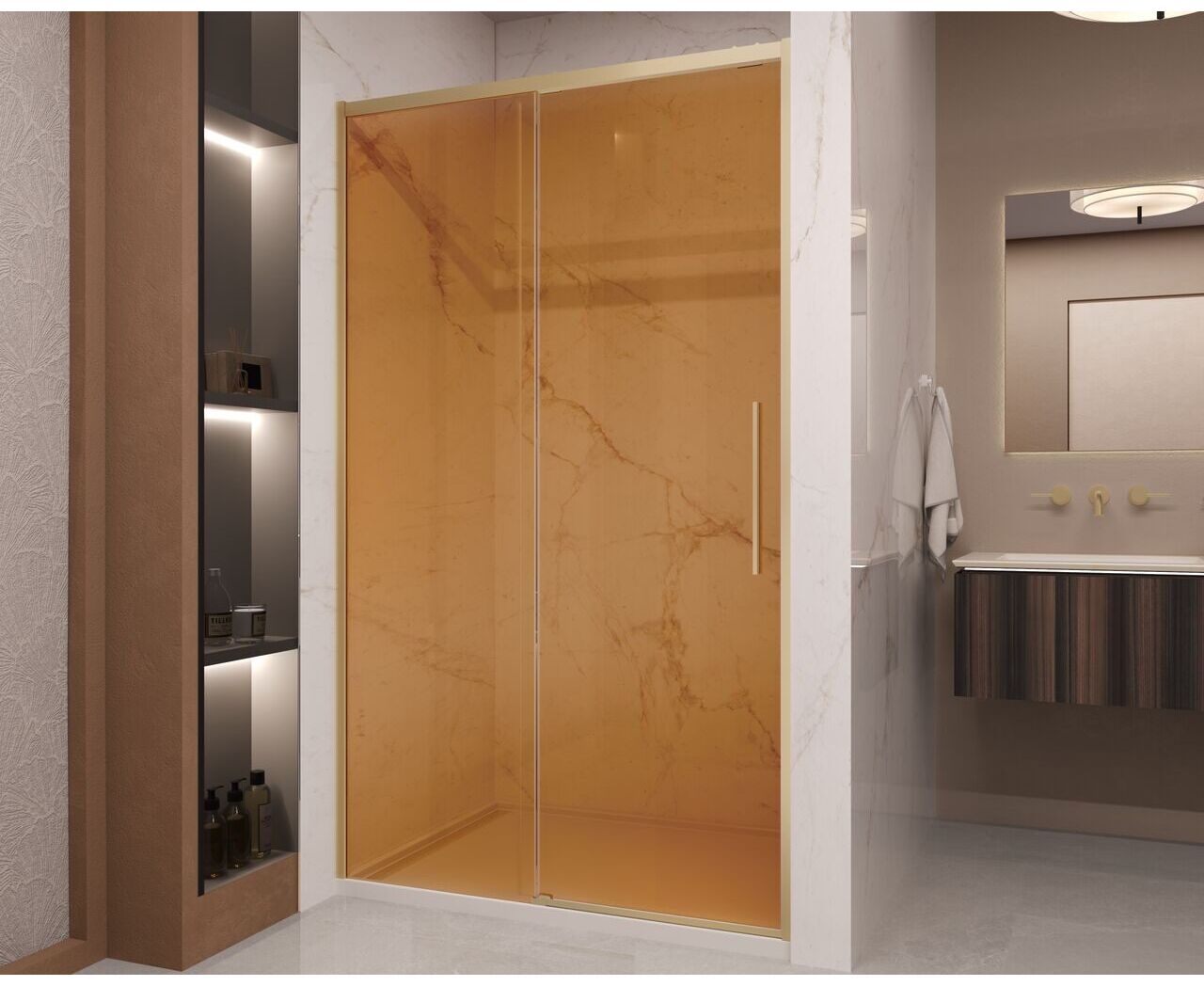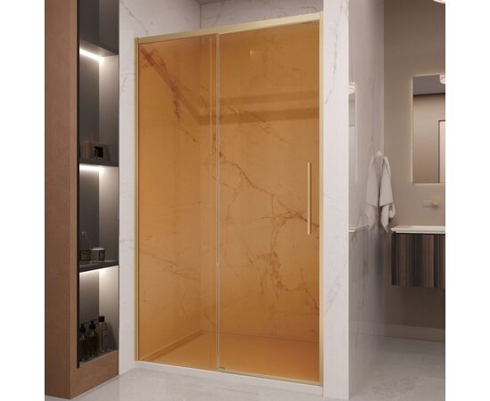 Душевая дверь Stella VDS-1ST120GSG, 1200, брашированное золото, стекло янтарь. Доводчики закрывания двери, ручка 430. Обработка стекла: Easy Clean.