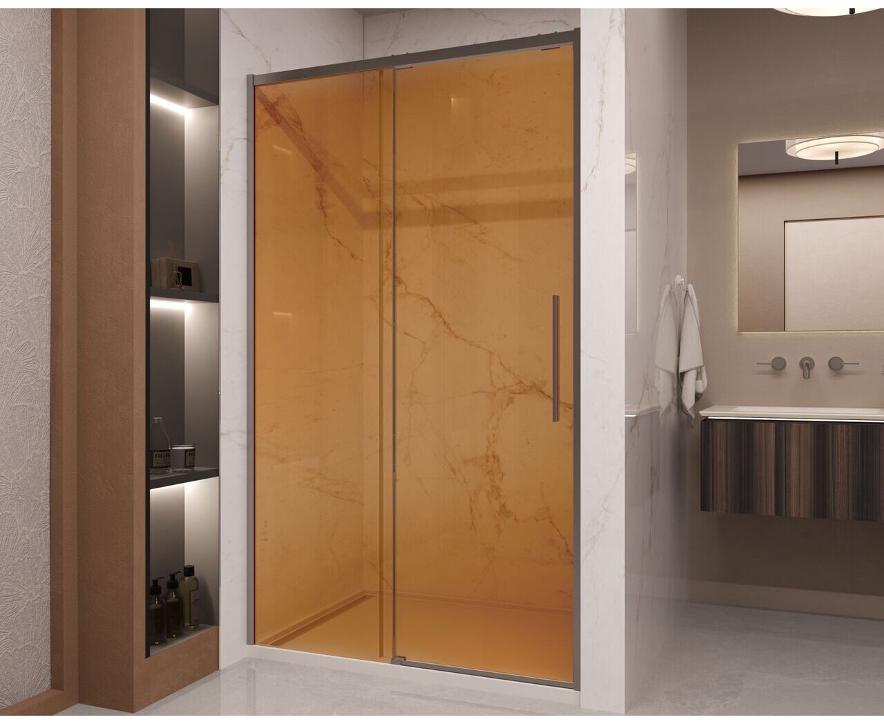 Душевая дверь Stella VDS-1ST120GSGM, 1200, вороненая сталь, стекло янтарь. Доводчики закрывания двери, ручка 430. Обработка стекла: Easy Clean.