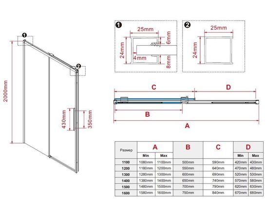 Характеристики Душевая дверь Vincea Stella VDS-1ST140CLG 1400 брашированное золото стекло прозрачное
