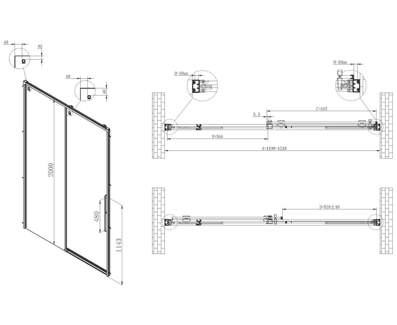 Душевая дверь Ultima VDS-7UL120CL, 1200, хром, стекло прозрачное. Доводчики закрывания двери, ручка 480.