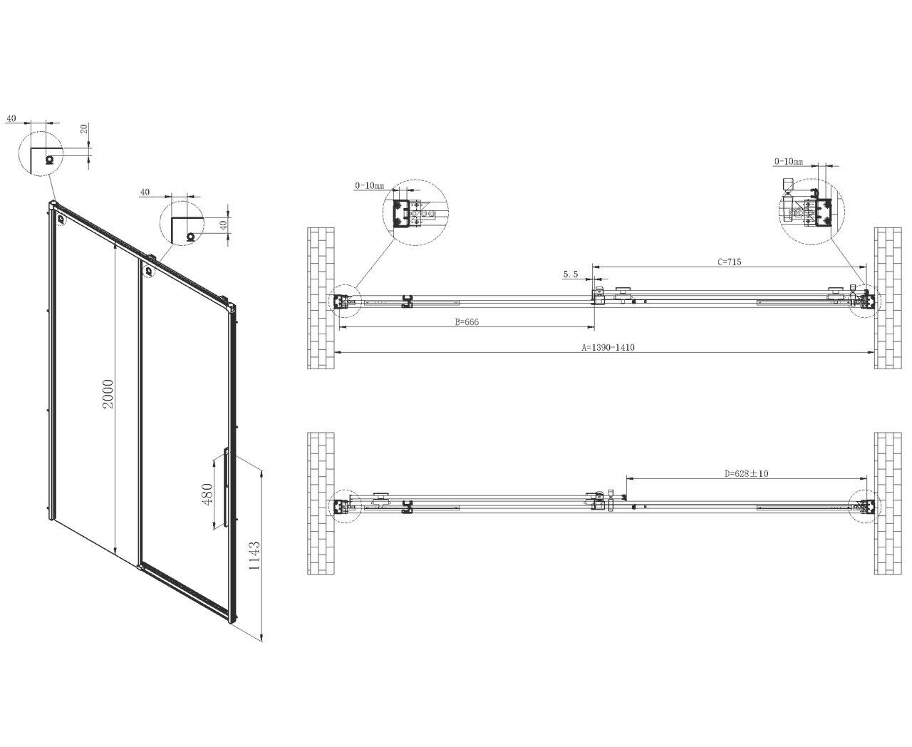Душевая дверь Ultima VDS-7UL140CLGM, 1400, вороненая сталь, стекло прозрачное. Доводчики закрывания двери, ручка 480.