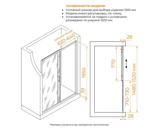 Характеристики Душевая раздвижная дверь-купе в нишу RGW PA-114 профиль хром