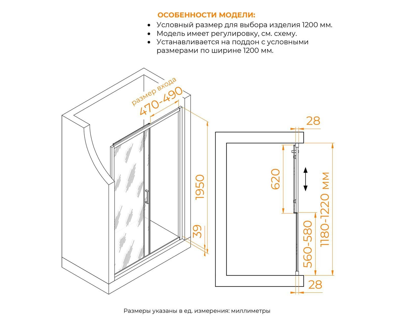 Характеристики Душевая раздвижная дверь-купе в нишу RGW PA-114B профиль черный