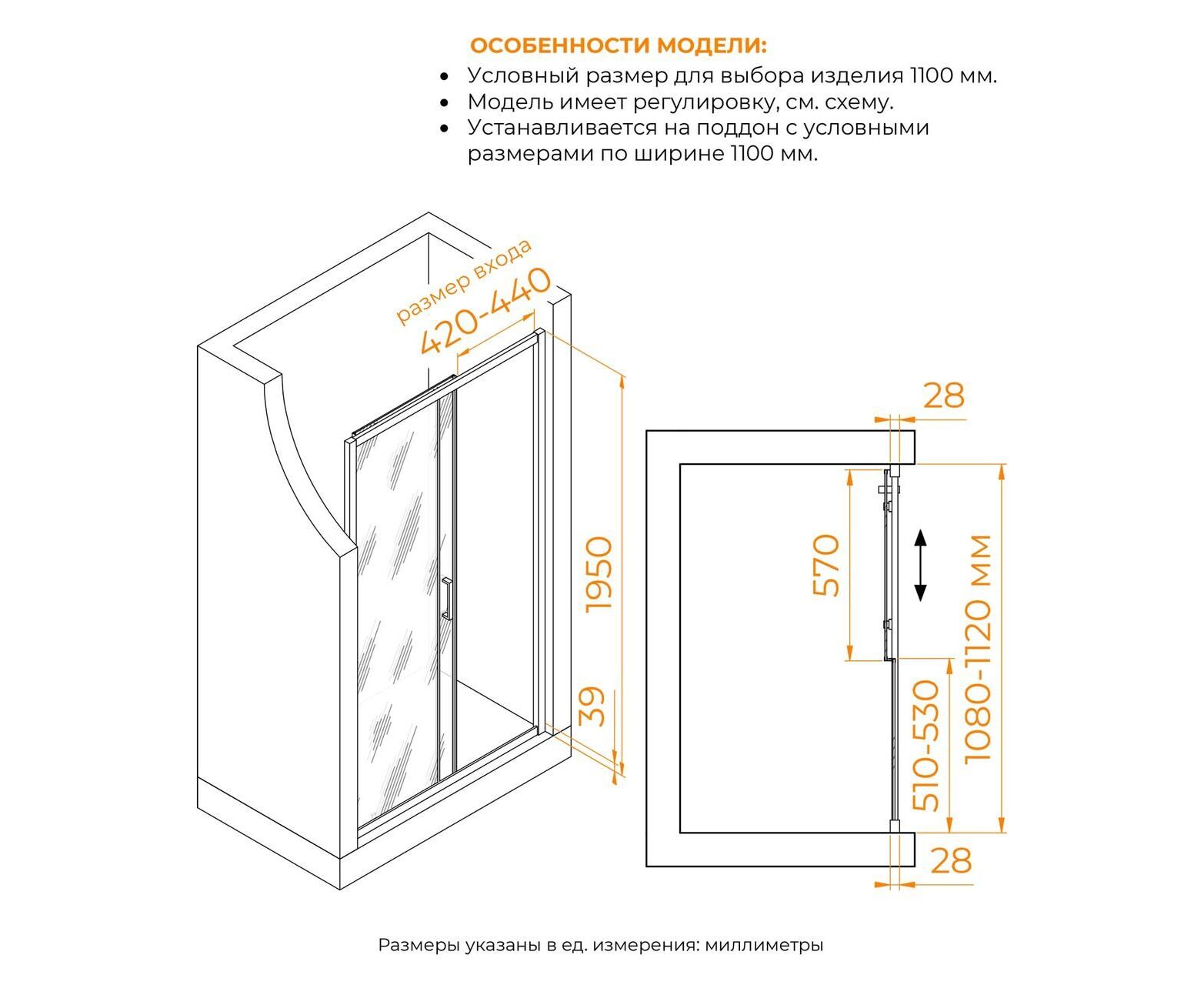 Характеристики Душевая раздвижная дверь-купе в нишу RGW PA-114B профиль черный