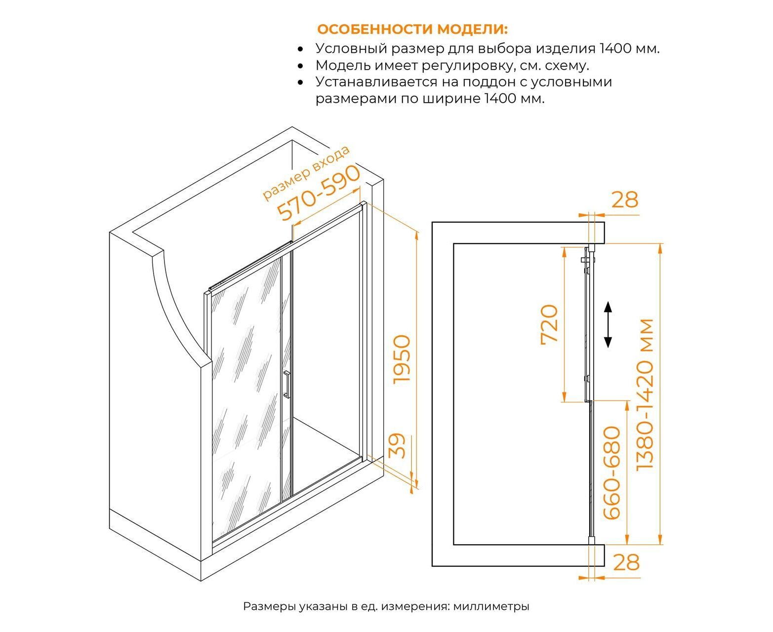 Характеристики Душевая раздвижная дверь-купе в нишу RGW PA-114B профиль черный