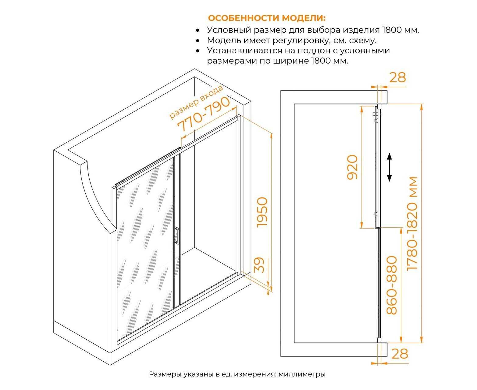 Характеристики Душевая раздвижная дверь-купе в нишу RGW PA-114B профиль черный