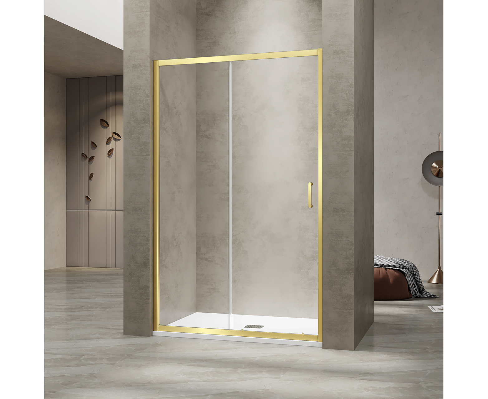 Душевая раздвижная дверь-купе в нишу RGW PA-114Gb профиль золото браш