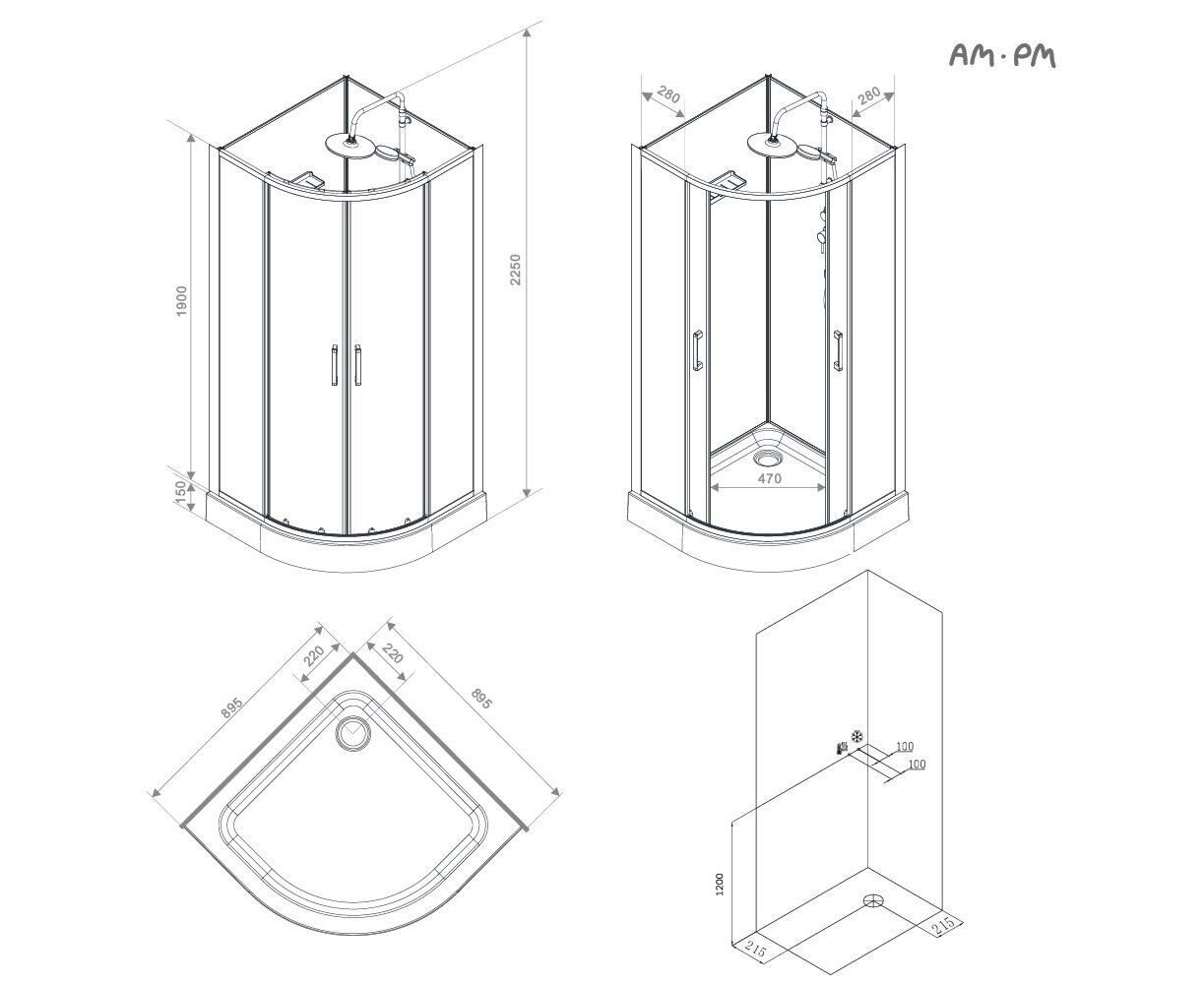 Душевая кабина AM.PM Above W9XC-401-9090MT 90x90 см без гидромассажа