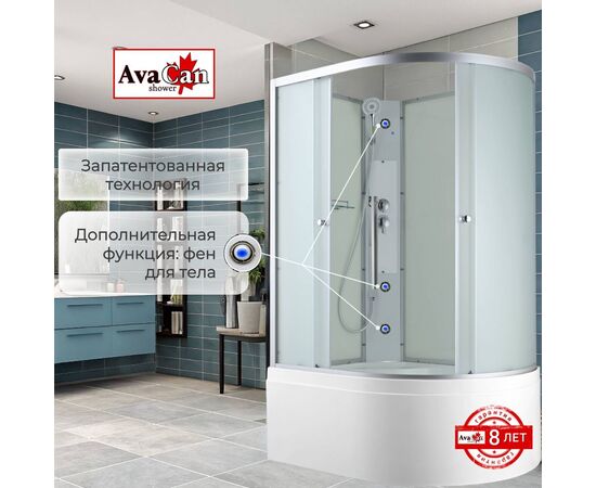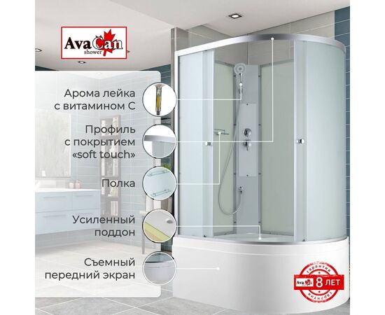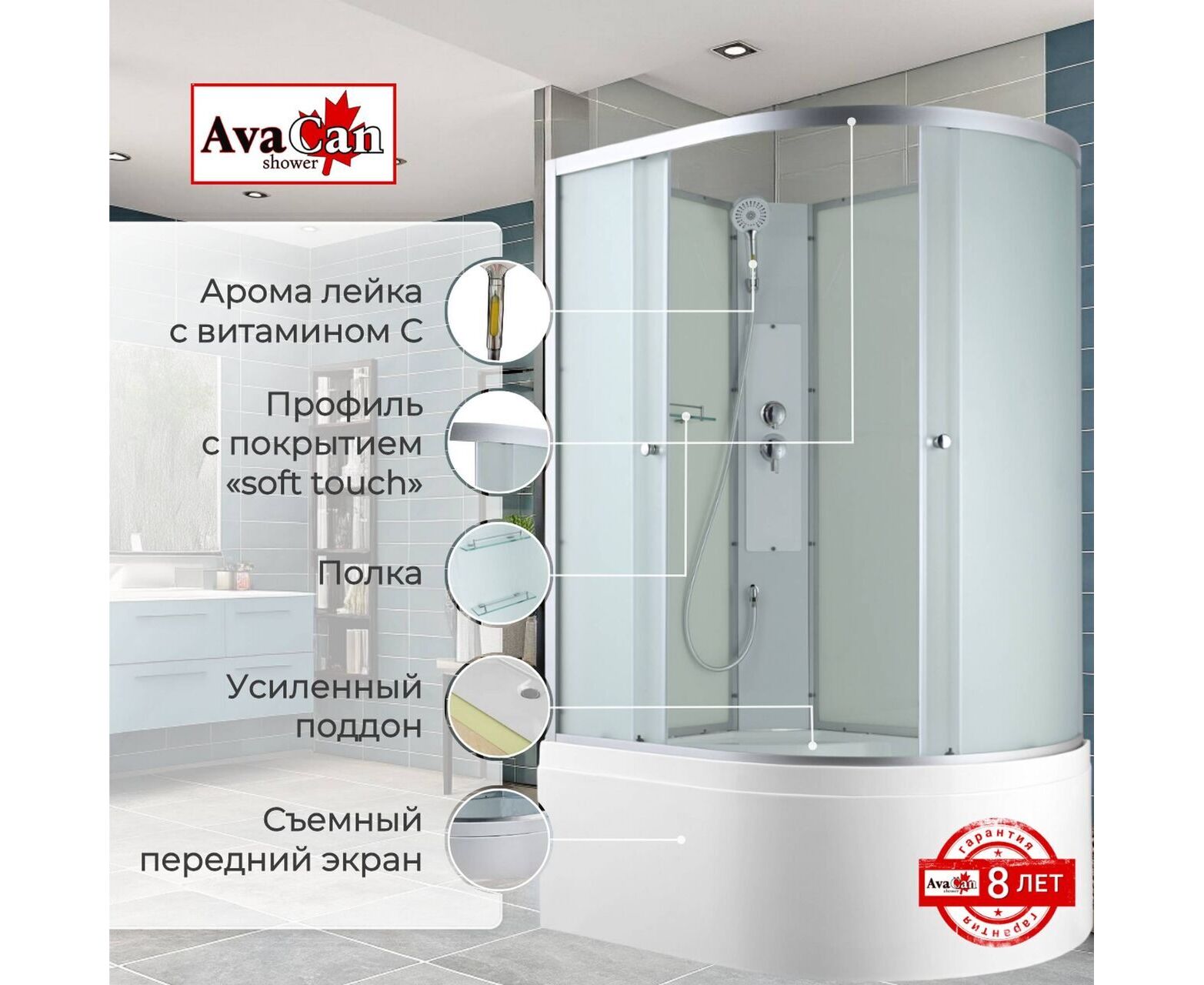 Стильная душевая кабина AvaCan C5012L N сочетает в себе высокую функциональность, практичность и надежность. При изготовлении применяется безопасное закаленное стекло толщиной 4 мм (матовое), надежно фиксируемое алюминиевым профилем. Сборка без силикона (увеличивает срок службы), внутренняя сборка (облегчает установку ,ревизию, позволяет установить душевую кабину в ограниченном пространстве, в том числе в нишу),смеситель резьбовой (без хомутов). Съемный экран поддона (позволяет осуществлять ревизию сифона). Цвет профиля матовый хром. Двойные металлические ролики дверей (увеличивают срок службы). В комплекте: полочка, арома-лейка с витамином С (картридж съемный).