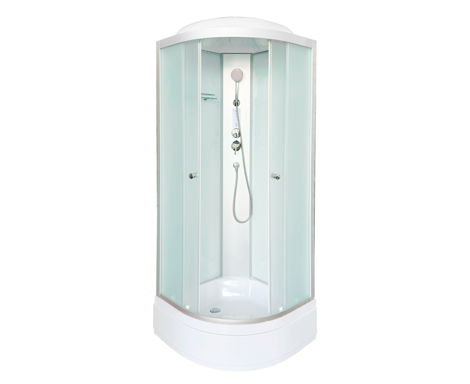 Ориентация: универсальная. Управление: сенсорное. Гидромассаж в кабине: нет. Исполнение полотна двери: матовое. Цвет задней стенки: белый. Материал полотна двери: стекло. Вход: спереди. Антискользящее покрытие поддона: есть. Исполнение задней стенки: матовое стекло. Освещение: верхнее.