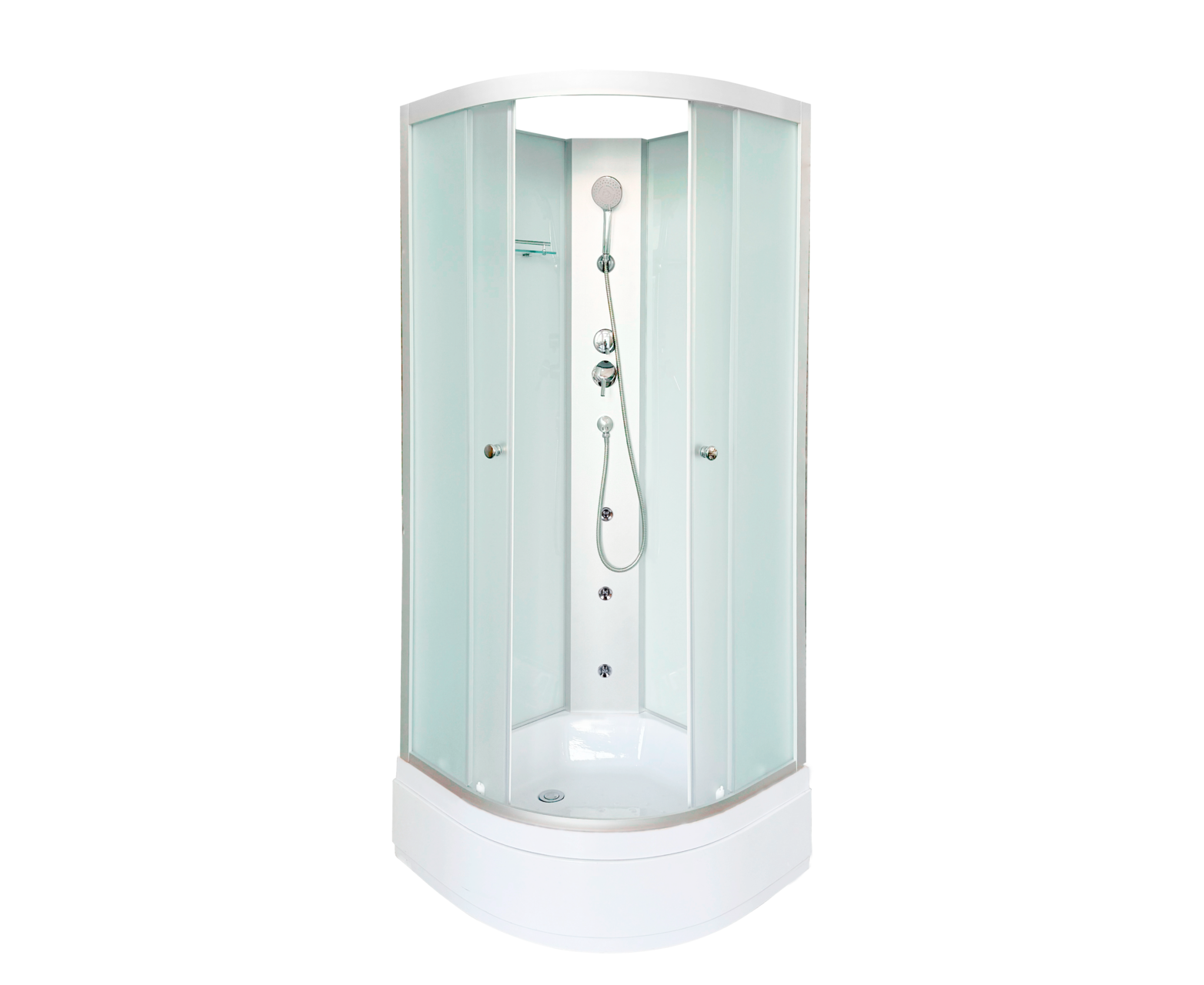 Ориентация: универсальная. Управление: ручное. Гидромассаж в кабине: есть. Исполнение полотна двери: матовое. Цвет задней стенки: белый. Материал полотна двери: стекло. Вход: спереди. Антискользящее покрытие поддона: есть. Исполнение задней стенки: матовое стекло. Освещение: нет.
