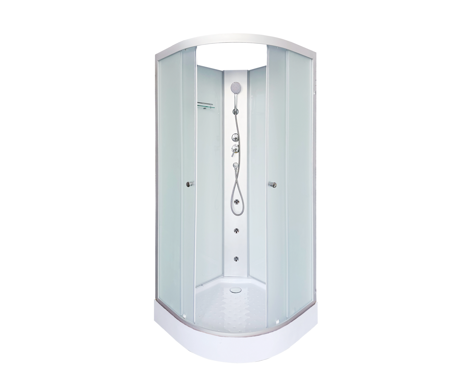 Ориентация: универсальная. Управление: ручное. Гидромассаж в кабине: есть. Исполнение полотна двери: матовое. Цвет задней стенки: белый. Материал полотна двери: стекло. Вход: спереди. Антискользящее покрытие поддона: есть. Исполнение задней стенки: матовое стекло. Освещение: нет.