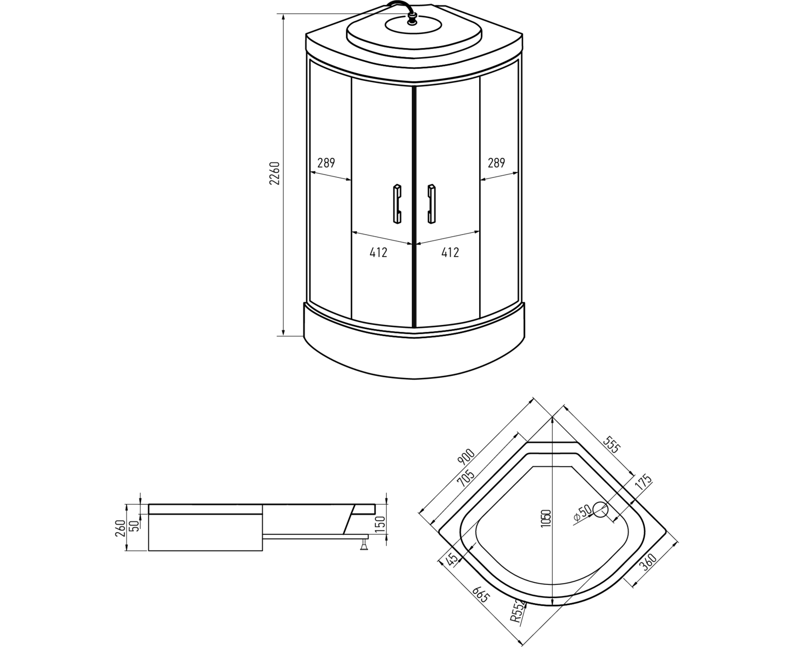 Характеристики Душевая кабина ERLIT ER350926-C2-RUS_GRAY 900х900х2260