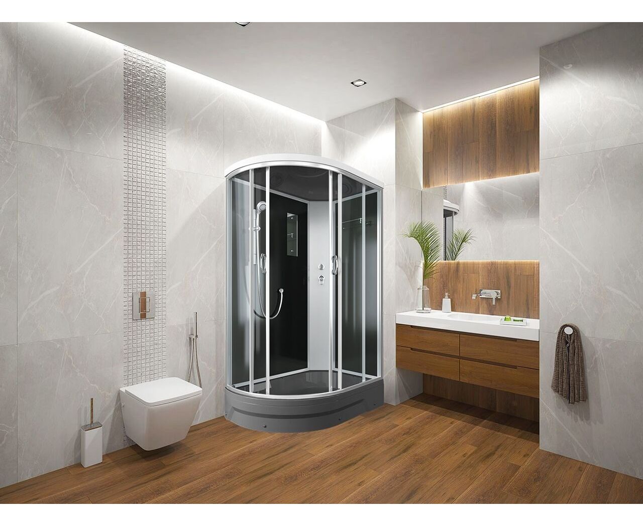 Сборка без герметика: в торцы стеклянных задних стенок в фабричных условиях устанавливается полый силиконовый уплотнитель, что позволяет при сборке кабины использовать герметик только при установке сифона.
